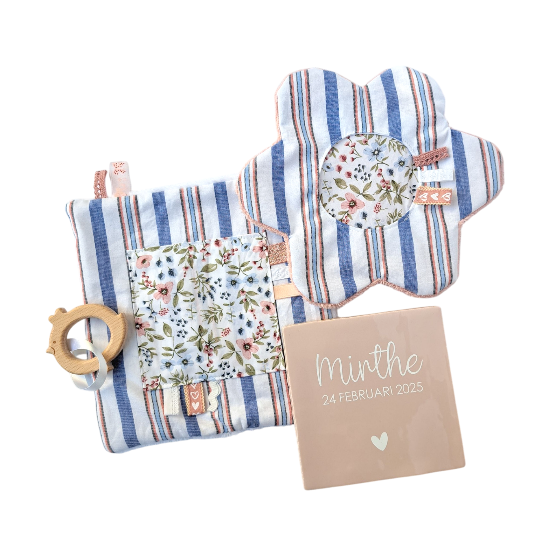 Mooi, handgevormd tegeltje met daarop de naam en/of geboortedatum van het kindje. Keuze uit verschillende kleuren tegeltjes en verschillende kleuren en ontwerpen voor de bedrukking.